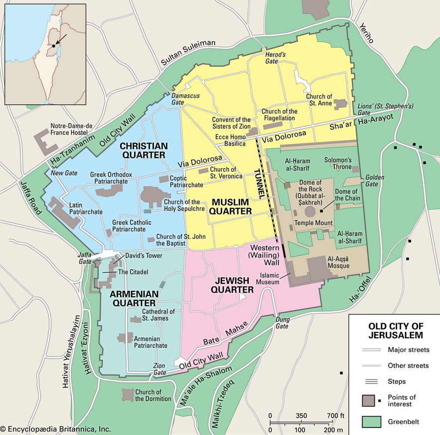 Reste que la carte, pérennisée par les Britanniques à leur arrivée en 1917, a fini par créer une réalité, la vieille ville est maintenant divisée en quatre quartiers beaucoup plus homogènes qu'au 19e siècle.