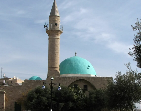 Cette mosquée est en l’ancienne synagogue d’Akko. Elle est également connue sous le nom de Mosquée de Tahar el-Omar, est située légèrement au nord de Khan al-Umdan. Le bâtiment a été construit par Cheikh Suhil, qui est décédé en 1748 (1161 dans le calendrier de l’Hijra, qui commence avec la migration de Muhammad de la Mecque à Médine).