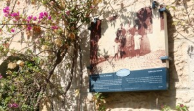 La plupart de ces écriteaux sont accompagnés de photos des habitants d’Ohel Moshé du 19e siècle.