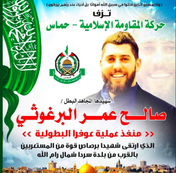 « Le Hamas annonce avec grande fierté la mort de son martyr Salih Omar Barghouti, l’auteur de l’héroïque opération à Ofra