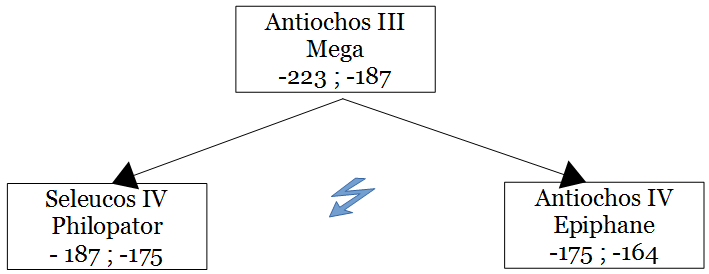 En -198, le roi Séleucide Antiochos III de Syrie écrase l'Égyptien Lagide Ptolémée V (ou plutôt ses ministres car le roi n'a que cinq ans) à la bataille de Panion qui scelle l'issue de la cinquième guerre de Syrie (- 200; -195). C'est sa revanche suite à la défaite de Raphia en -217 . Antiochos III, grand conquérant, atteint l'Inde, comme Alexandre le Grand.