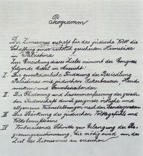 Programme de Bâle , proposé lors du premier congrès sioniste en 1897 |