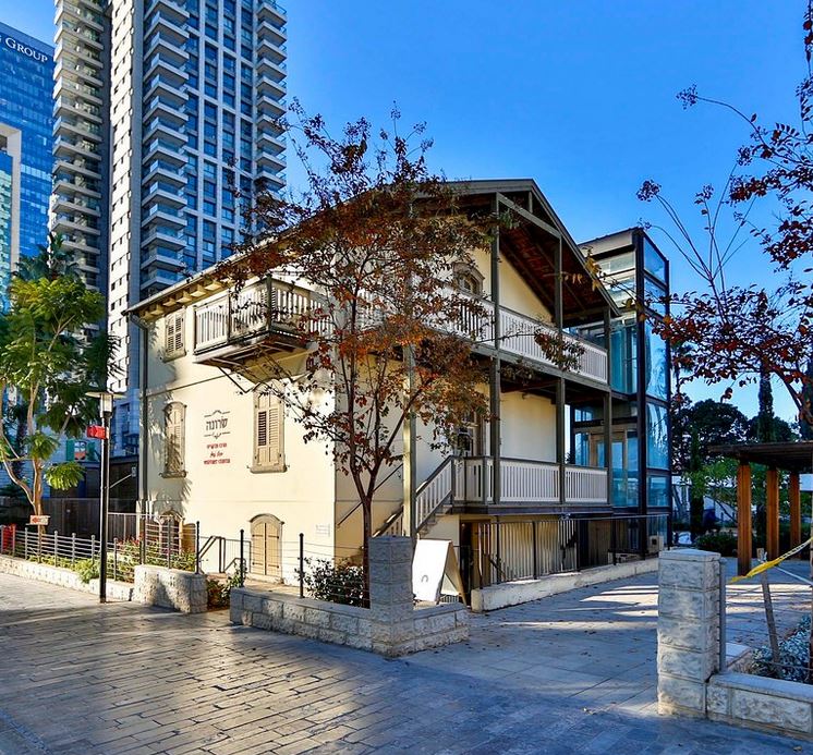 Le centre est construit sur les vestiges d'une colonie fondée en 1871 par les Templiers, une secte religieuse allemande qui s'efforce de hâter la venue du Messie en s'installant en Terre Sainte. C'est le premier site entièrement planifié de ce type dans la municipalité de Tel-Aviv.