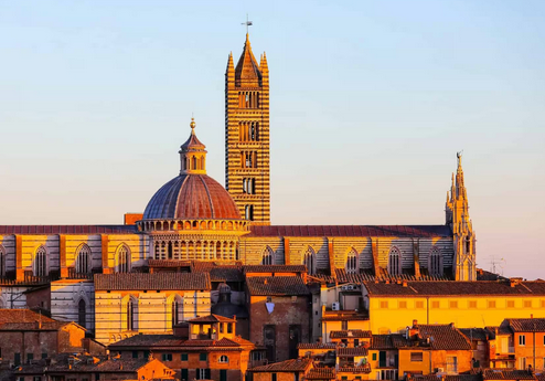 La ville fut fondée par les Étrusques, colonisée par les Romains et gouvernée par divers autres chefs, dont les Médicis. Sienne est divisée en trois parties : San Martino, Citta et Camolia, du nom des trois collines sur lesquelles elle est bâtie.