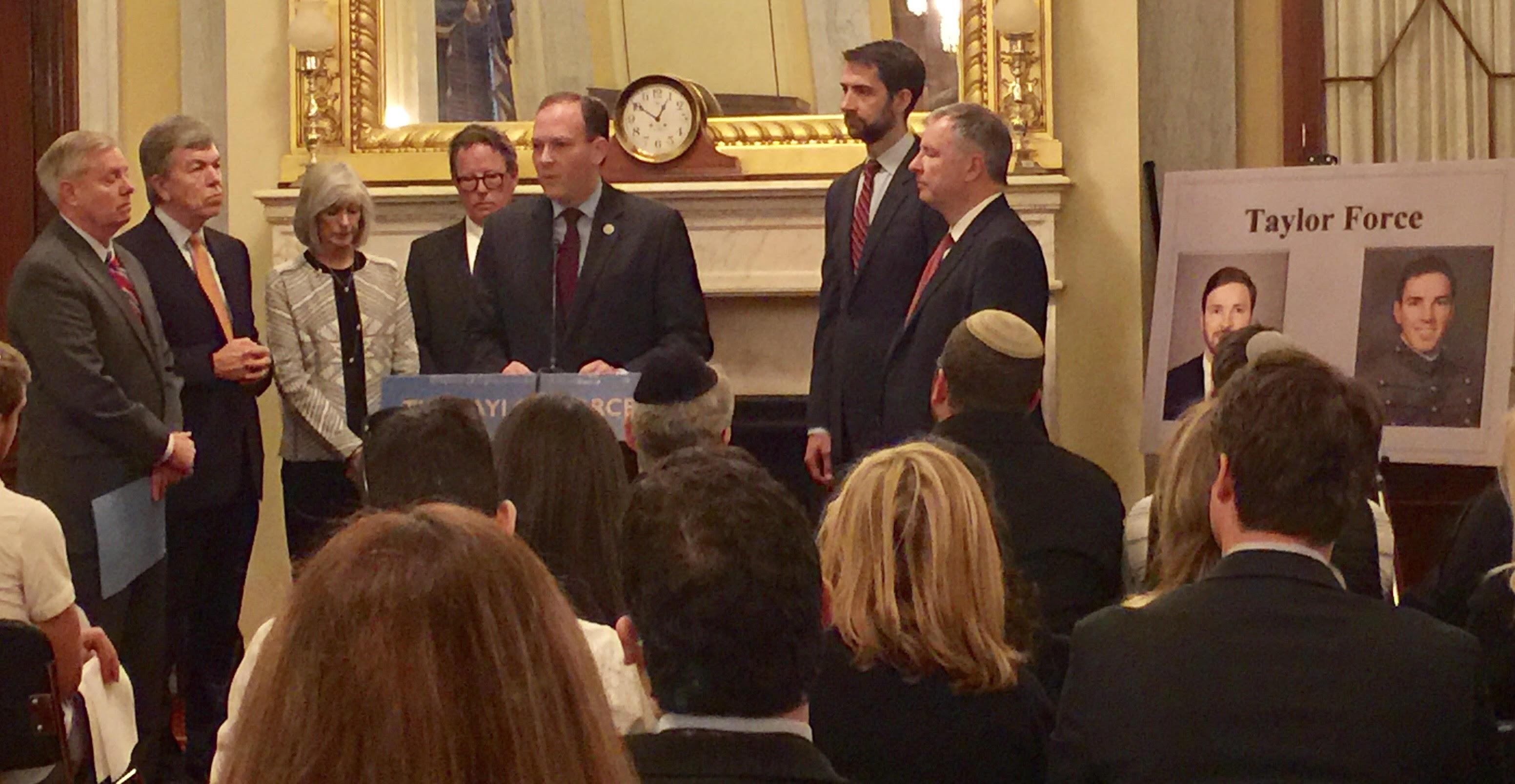 Le Taylor Force act, proposé en mars 2016 est voté le mardi 5 décembre 2017. Il s’agit pour le congrès de ne pas financer indirectement les familles des auteurs d’actes terroristes emprisonnés ou tués.