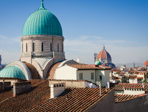 L’horizon de Florence est très caractéristique, reconnaissable par n’importe qui dans le monde; parmi les toits se dresse l’imposant dôme de Brunelleschi, le clocher de Giotto et la célèbre silhouette du Ponte Vecchio. Parmi ceux-ci, vous remarquez également une autre structure en forme d’église, surmontée d’un dôme vert: elle ne passe certainement pas inaperçue.