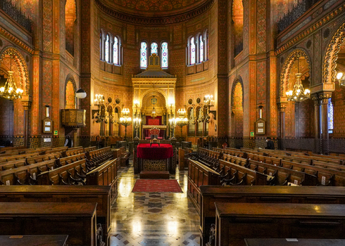 Sa construction s'inspira du climat de l'Émancipation, époque marquée par deux processus apparemment opposés, mais en réalité étroitement liés : l'assimilation des modèles de basiliques chrétiennes et des anciennes synagogues espagnoles, et la recherche d'une identité juive qui s'exprimerait également à l'extérieur par une architecture distinctive. Le résultat global, interprété à la lumière de l'éclectisme de la fin du XIXe siècle, offrait une création novatrice, mêlant des éléments mauresques, romans et byzantins.