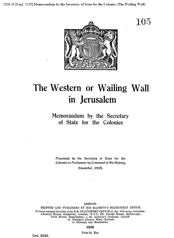 On verra que l'intervention de la police a été causée par un acte des autorités juives, considéré par le gouvernement palestinien comme une infraction au statu quo.