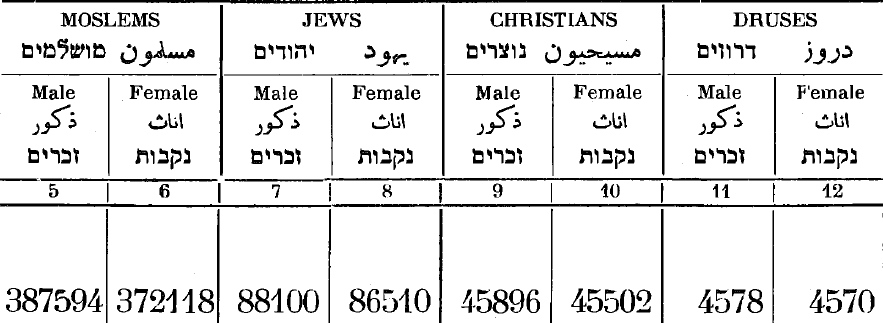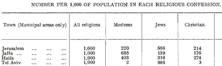 Population urbaine (374 / 1000 habitants) dont Chrétiens (758/1000), Juifs (736/1000) et Musulmans (248 /1000)