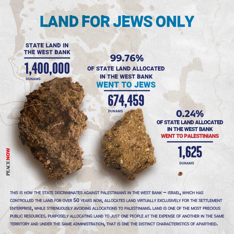 “ 99,8% des terres domaniales allouées en Cisjordanie ont été cédées à des Israéliens; Presque rien n'a été donné aux Palestiniens.”