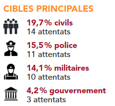 Un sur cinq visait à tuer des civils ( mais les civils sont la première cible des attentats de l'organisation Etat- Islamiste depuis 2013 en France)