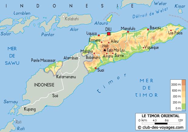Le Timor-Leste (ex Timor-Oriental), d 'une superficie de 19 000 km², est situé sur la partie orientale de l'île de Timor. La partie occidentale appartient à l’Indonésie.