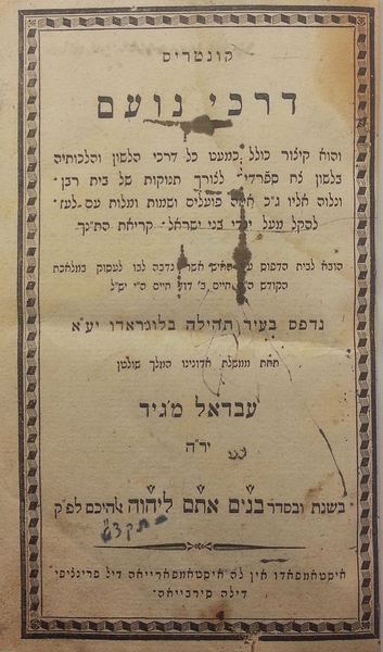 Derech Noam - le chemin de la tranquilité - ou de la douceur (1839)