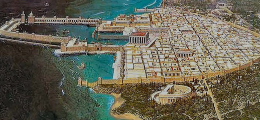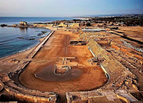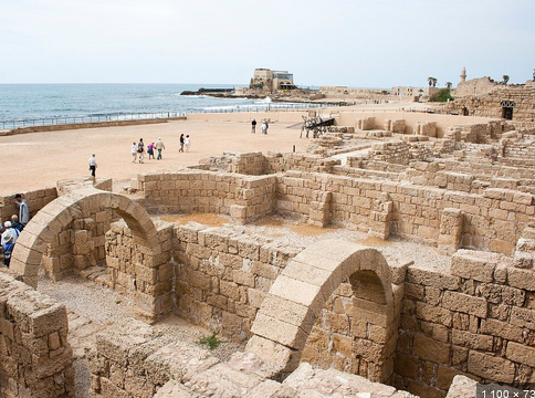 Le port de Césarée qui fut construit par Hérode était l’une des plus grandes merveilles du génie de son temps. Il est le premier grand projet avec des constructions mise sous l’eau. La longueur de la rive Sud pour briser les vagues est de 500 mètres. Le plus gros bloc de pierre mesure 5,50 m. x 1,25 m. x 1,25 m. et pèse plus de 20 tonnes. Le plus grand bloc de béton est 11,50 m. x 15 m. x 2,40 m. Les blocs de béton furent créés avec une forme flottant sur l’eau qui était comblée avec du béton, lorsqu’elle était remplie, elle coulait sur place et le béton durcissait sous l’eau. (Antikforever)