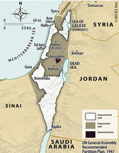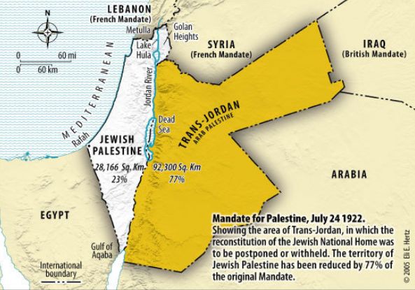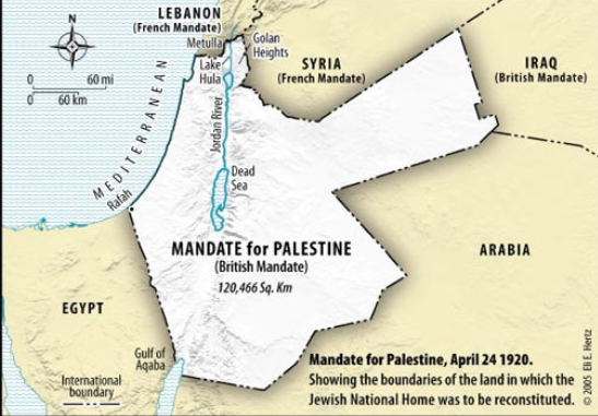Palestine mandataire issue du traité de San Remo : 120 466 km2