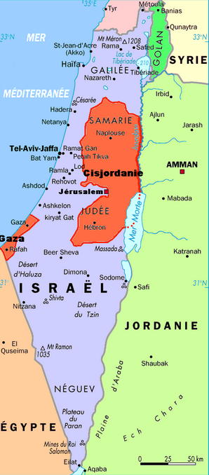Cisjordanie dont Jérusalem est intégrée à la Jordanie 5860 km2 Gaza administrée par l'Egypte 365 km2