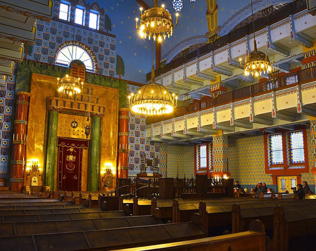 La synagogue de Kazinczy utca devient très vite le cœur du judaïsme orthodoxe de Budapest, à quelques mètres de la Grande synagogue de tendance néologue. En 1928, un mikvé est inauguré et fonctionne jusque dans les années 1940. Située dans le ghetto de Budapest, la synagogue souffre de la Seconde Guerre mondiale. Les bâtiments détruits sont reconstruits en 1945 et le culte reprend de la même façon. (wikipedia)