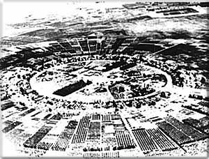 Le Moshav Nahal dont le planconçu par l'architecte richard Kaufmann suit des cercles concentriques |