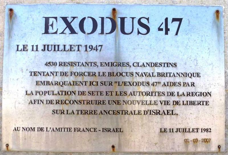 Une plaque a été posée à Sète en mémoire du bateau Exodus 47 |