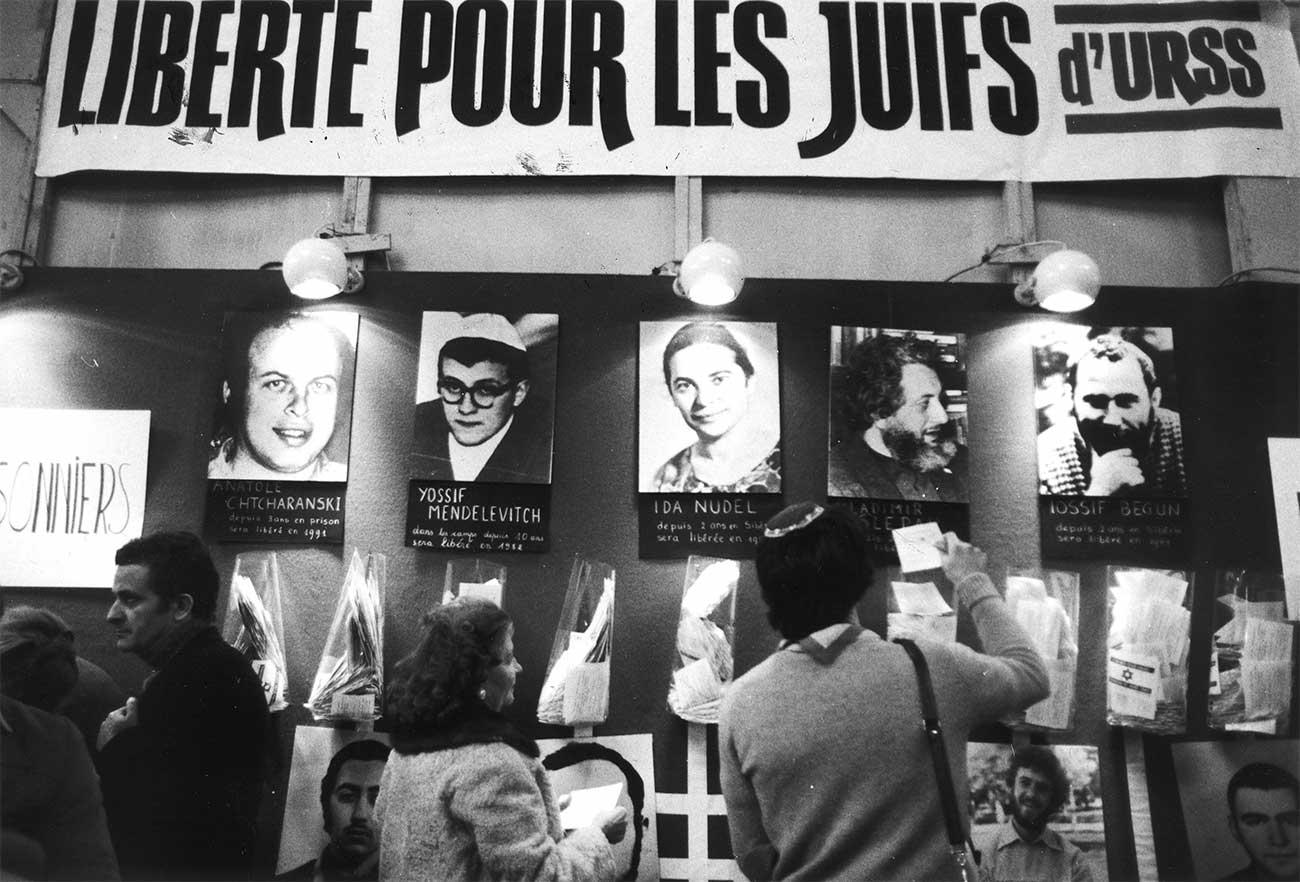 Les ennuis pour les Juifs d'URSS ne s'arrêteront pas avec la mort de Staline. Ici une manifestation pour demander la libération de Refusniks en 1975. |