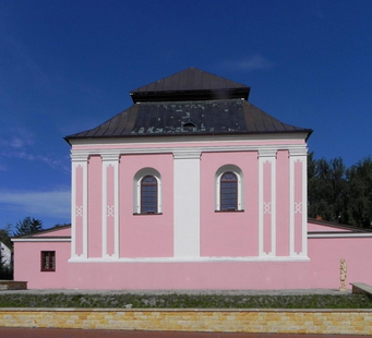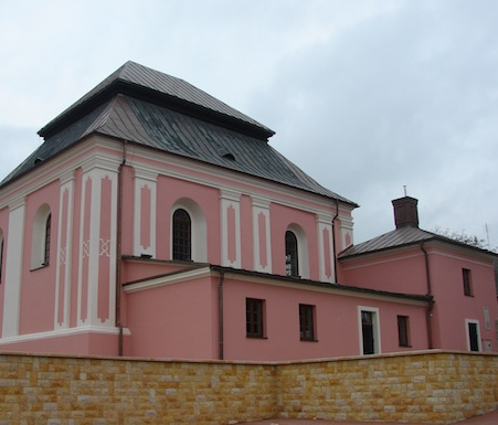 La synagogue, assez haute, , rue Sadowa, , proche de la place centrale,  présente un plan carré avec un toit en pente,  de la place centrale (rue Sadowa), Elle est maintenant devenue la « maison de la culture ». Une plaque indique qu’il s’agit de l’une des plus anciennes synagogues de Pologne. Elle est sous la protection des monuments historiques.