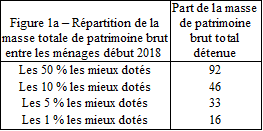 Début 2018, la moitié la mieux dotée des ménages vivant en France concentre 92 % de la masse de patrimoine brut de l’ensemble des ménages.