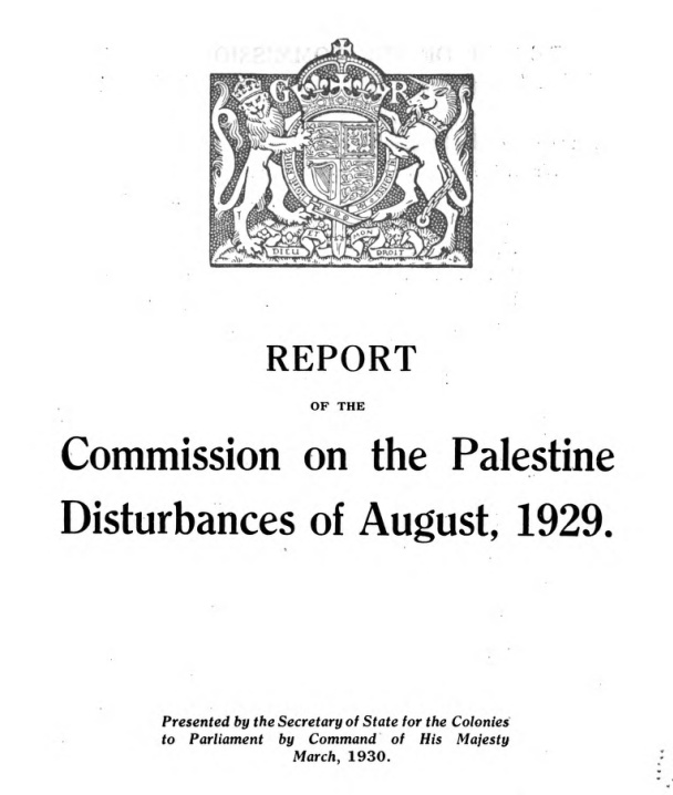Ce rapport de 200 pages fait suite aux émeutes de Jérusalem en 1929.