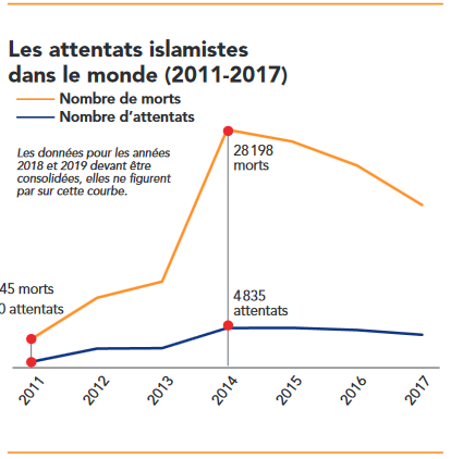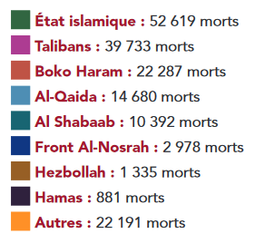 Entre 2013 et 2019, le terrorisme islamiste a frappé 23 315 fois faisant 122 092 morts.
