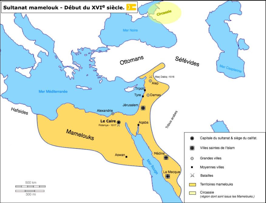 En 1517, le sultan ottoman Selim s'empara du Caire et fit exécuter la plupart des hauts dignitaires du régime déchu. Avec la chute des Mamelouks, la Syrie et l'Égypte se soumettaient pour trois siècles à la Sublime Porte. Néanmoins, Selim intégra dans ses troupes bon nombre d'anciens esclaves soldats. Ceux-ci se sont maintenus en Égypte, continuant d'acheter des mamelouks circassiens jusqu'à la fin de l'époque ottomane, tout en s'intégrant aux élites égyptiennes, gagnant même une véritable autonomie politique au XVIIIe siècle. Le « ramassis d'esclaves » qui, aux yeux du général Bonaparte, « tyrannisaient depuis trop longtemps la plus belle partie du monde » et furent dispersés, un jour de juillet 1798, à la bataille des Pyramides, étaient bien les derniers héritiers des Mamelouks, ceux qui, entre le XIIIe et le XVIe siècle, avaient relevé au Caire l'empire d'Islam.